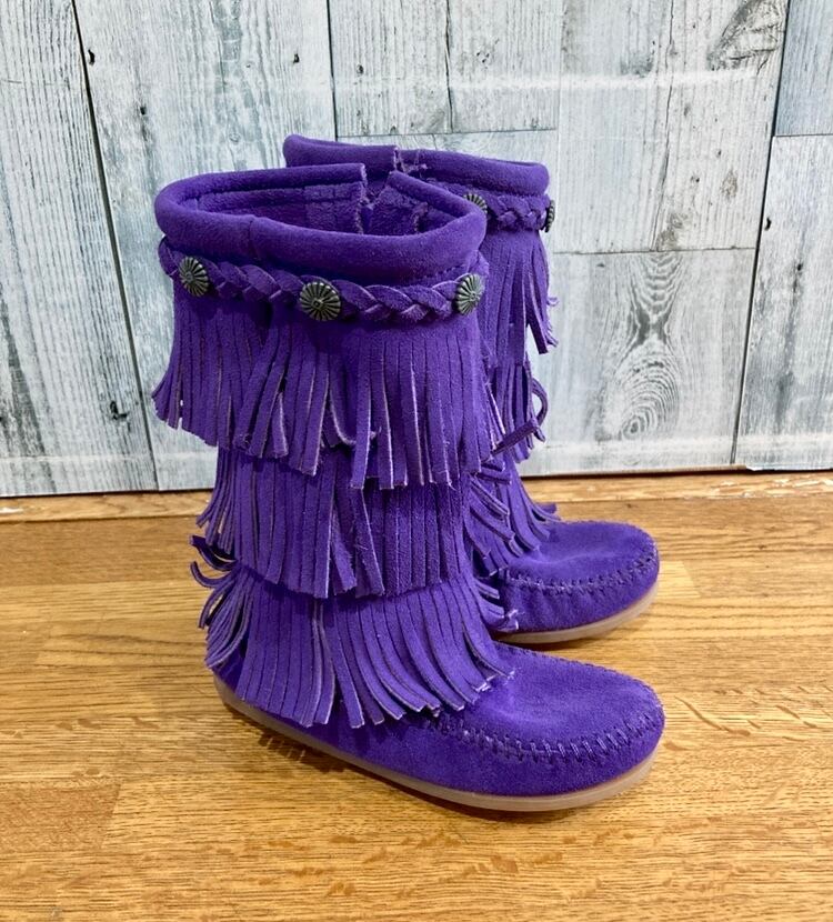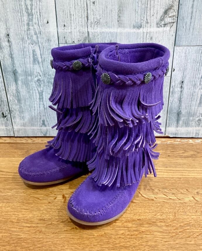 MINETONKA ミネトンカ フリンジ ブーツ 紫 パープル キッズサイズ10 約16センチ 美品