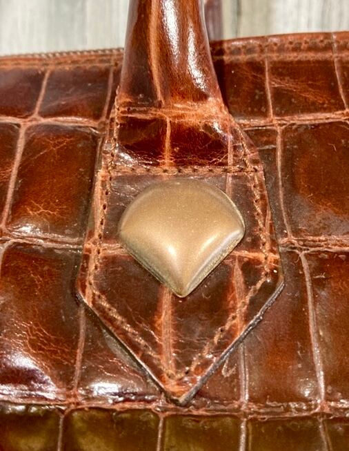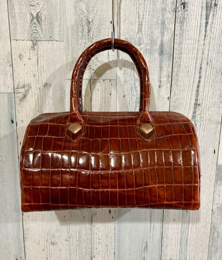 イタリア製 ビンテージMARCO TADINI 真鍮金具 クロコダイル ミニ ボストンバッグ