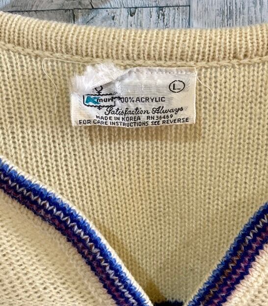 ビンテージ K-MART Vネック マルチボーダーセーター 70s80sヒッピーボヘミアン