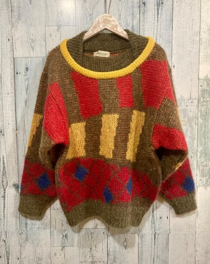 ビンテージAndre Lucianoアンドレルチアーノ ワイドシルエット柄物ニットセーター80s90s