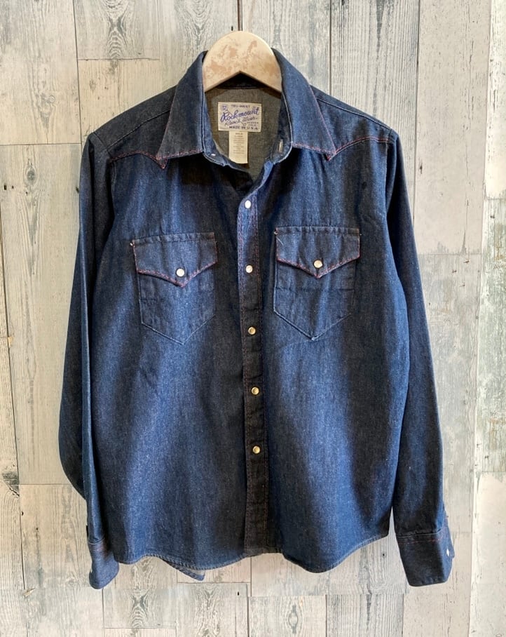 アメリカ製ビンテージROCK MOUNT ロックマウント 赤ステッチ デニムウエスタンシャツ