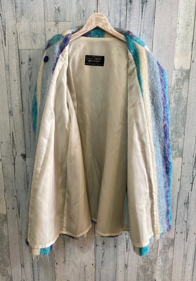 ビンテージ イギリス製 サミュエルツイード ストライプ ニットコート