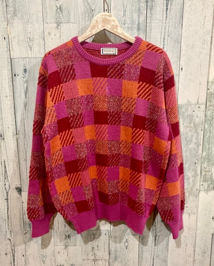 ビンテージ イヴ・サンローラン ピンク レッド系 柄物ニット セーター 90s