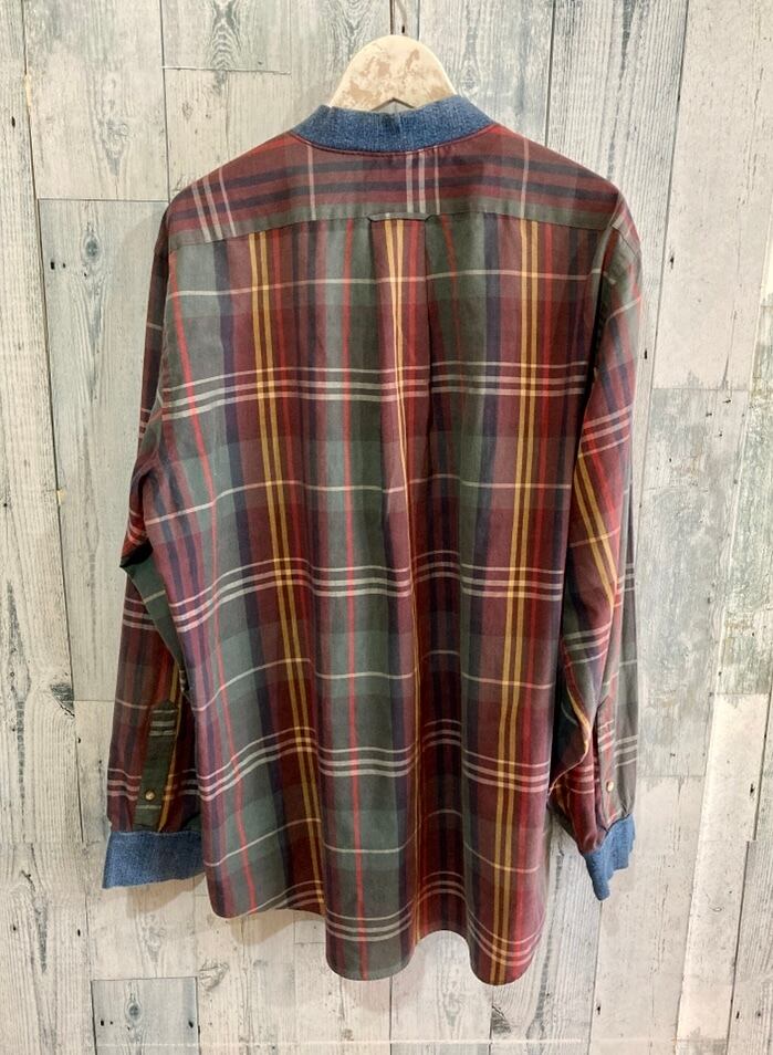 ビンテージROUNDTREE&YORKE 襟袖リブ チェックシャツ 90s