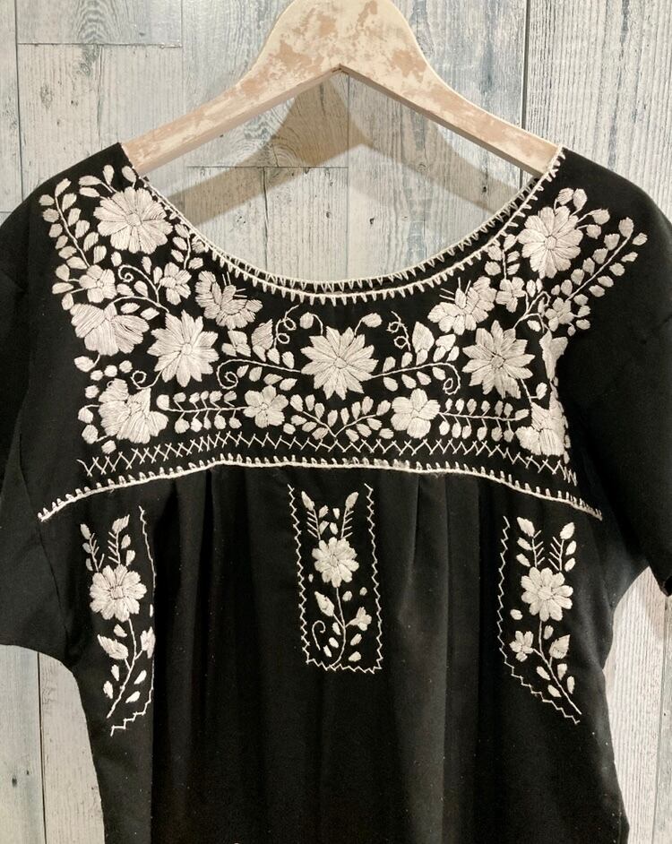 刺繍 メキシカンドレス ブラック×ホワイト ヒッピー