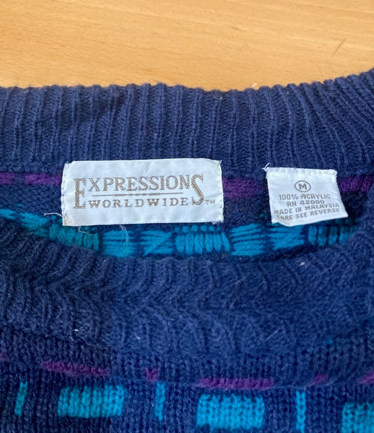 ビンテージ EXPRESSIONS 柄もの ニット クルーネックセーター 立体
