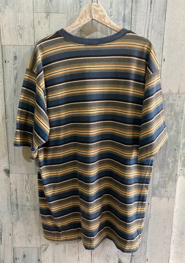 アメリカ製ビンテージHANGTENハンテンブルー系ボーダーポケットTシャツサーフスケート
