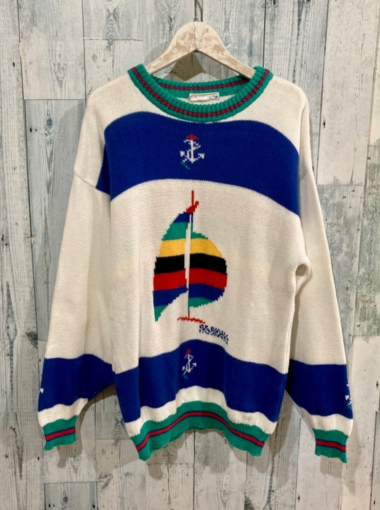 アイルランド製ビンテージ ヨット 海 イカリ マリン ニット セーター 80s 90s