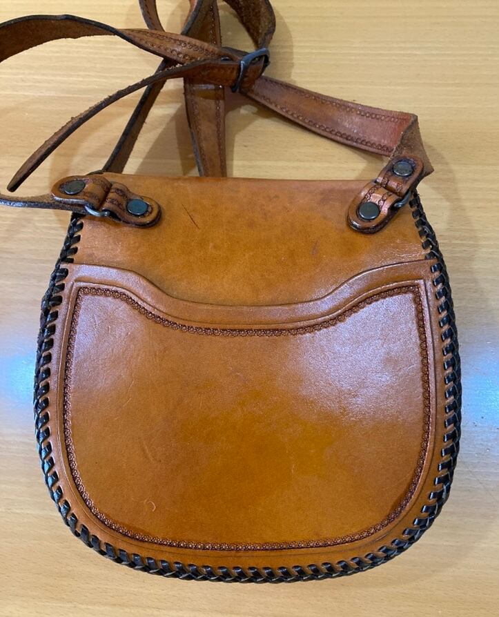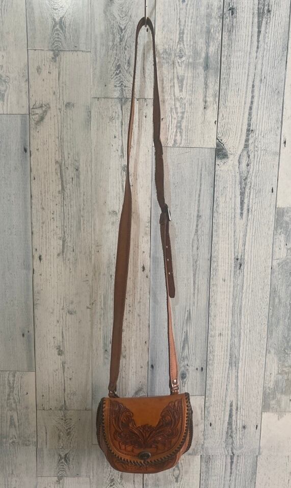 ビンテージ カービング レザーショルダーバッグ ポーチ サコッシュ