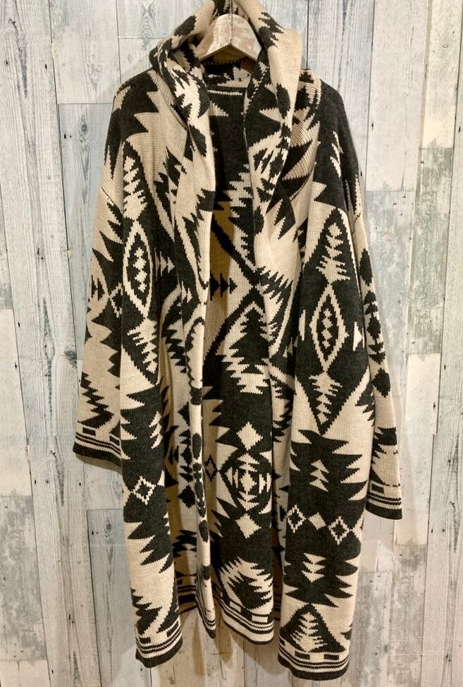 ネイティブ柄 フード付 ニットガウンコート オルテガ チマヨ