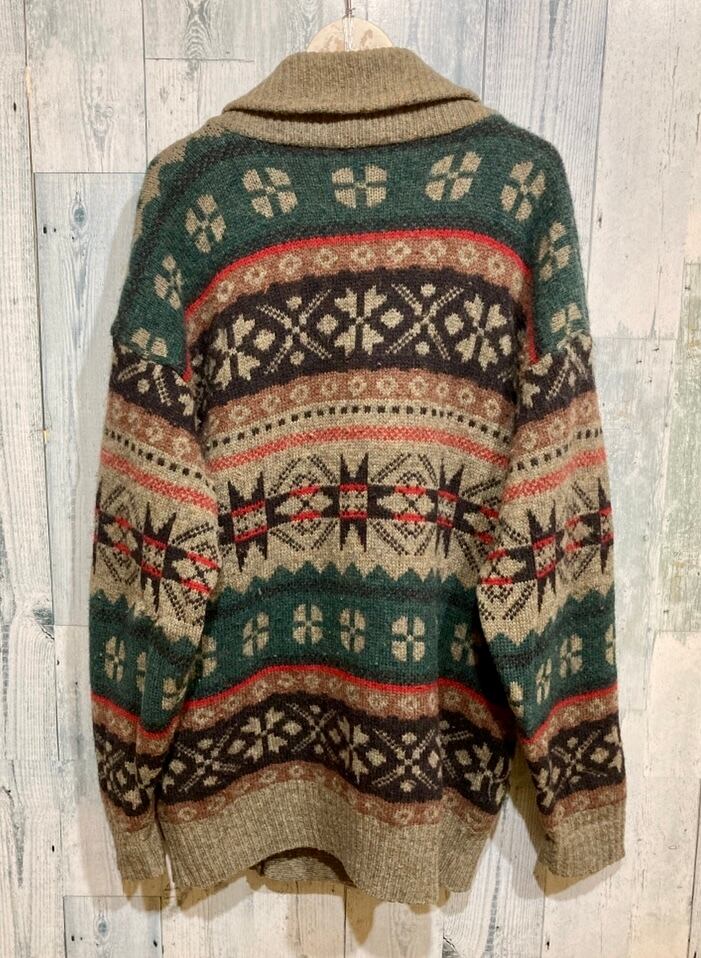 イギリス製ビンテージ eskimo 雪柄 カーディガン ダブル レアデザイン ビッグ