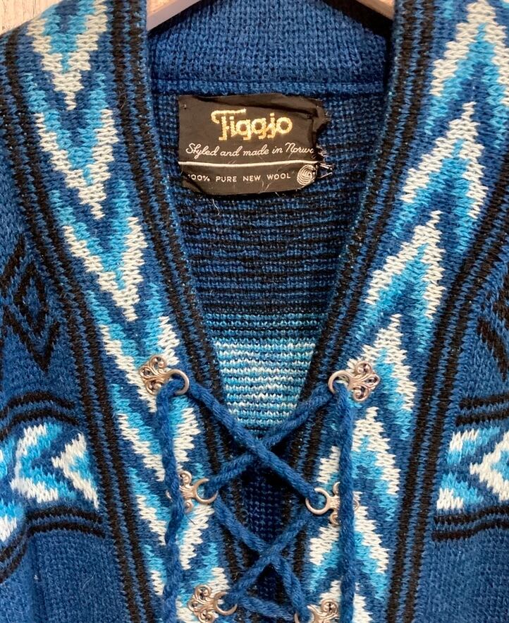 ノルウェー製ビンテージ ノルディックセーター レースアップ プルオーバー