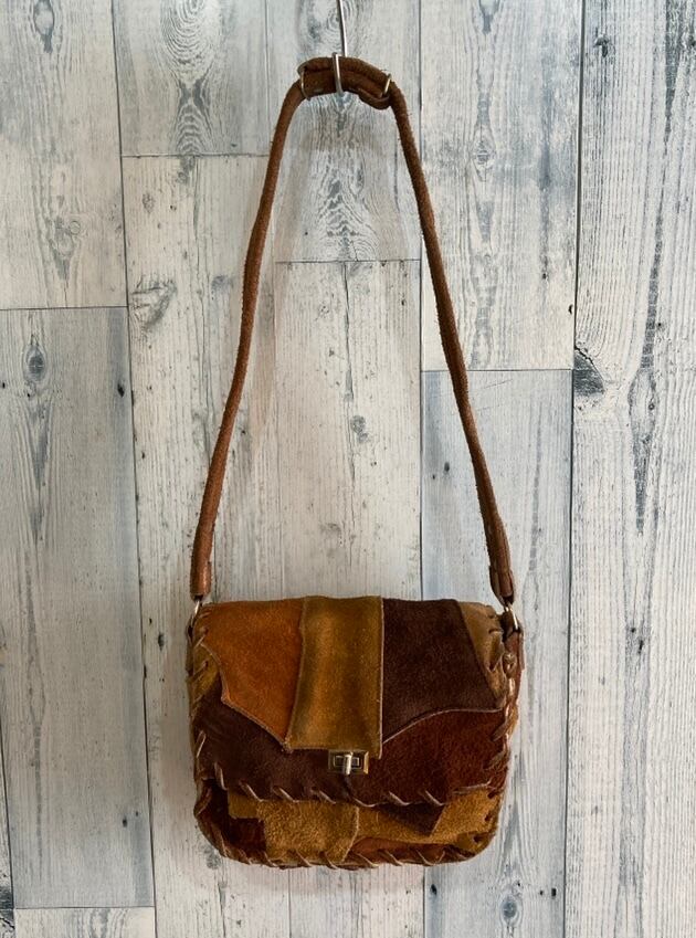 ビンテージ スエード パッチワーク レザー2way バッグ 70sヒッピーボヘミアン