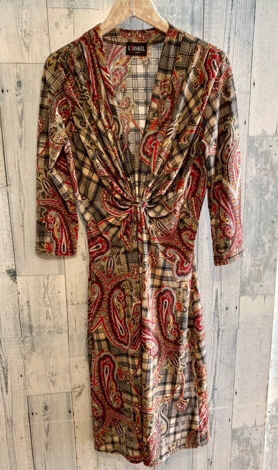 フランス製 LONKEL ロンケル ペイズリー チェック柄 ワンピース