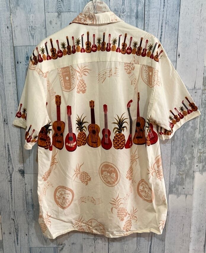 ハワイ製 ウクレレ柄 ハワイアンシャツ アロハHAWAII