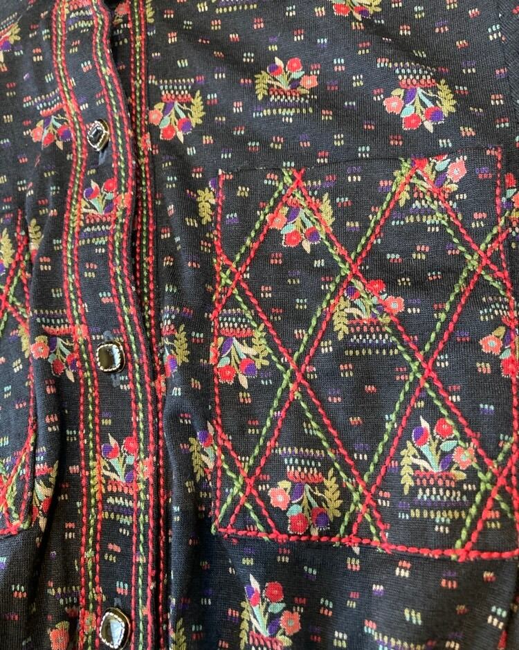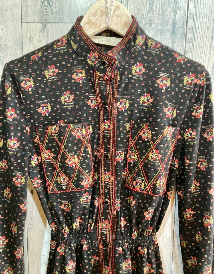レトロビンテージ 花柄 飾りステッチ ワンピース 昭和