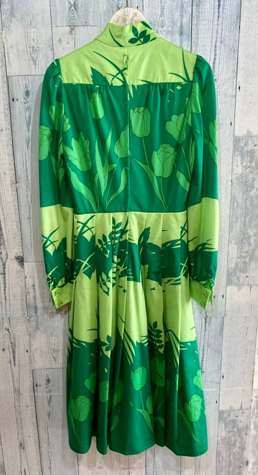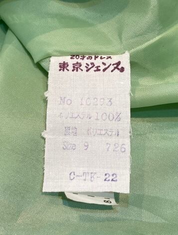 国産ビンテージ東京ジェンヌ リボンタイ付 昭和レトロワンピース グリーン系 70s80s