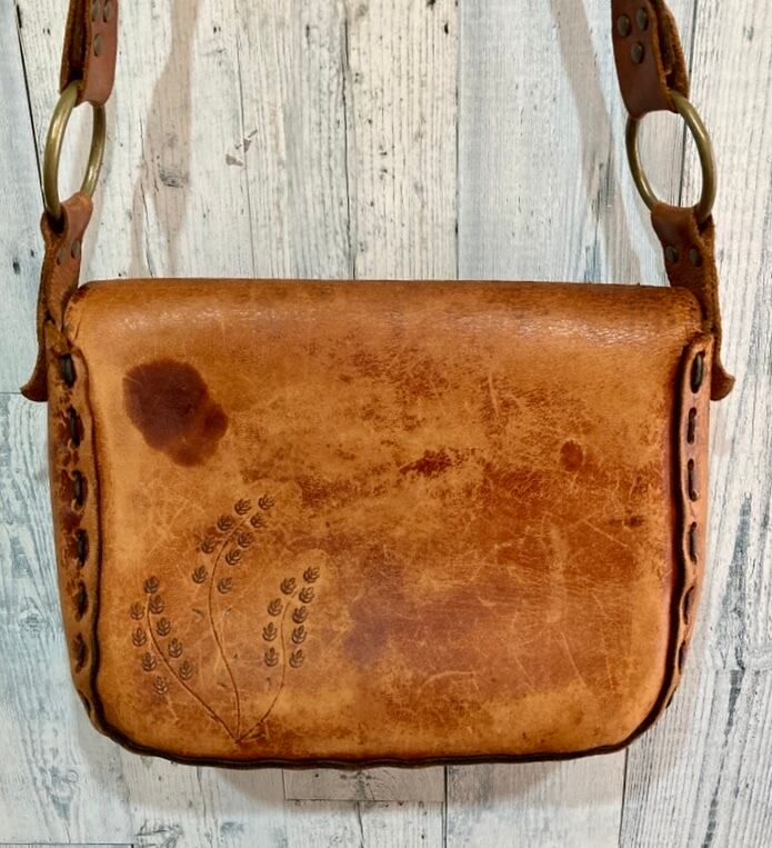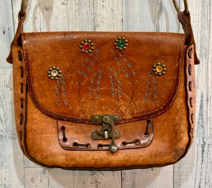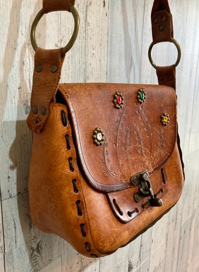 ビンテージ スタッズ&型押 レザーショルダーバッグ 70sボヘミアンヒッピー