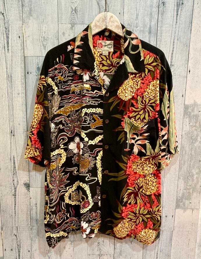 ハワイ製Hawaiian original クレイジーパターン アロハシャツ マルチ パネル