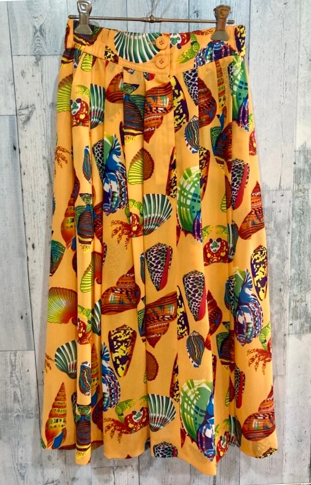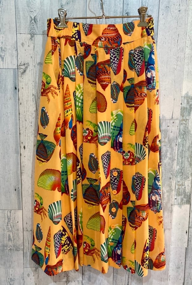 ビンテージ貝殻カニ柄ブラウス&スカートセットアップ80s90s昭和レトロ
