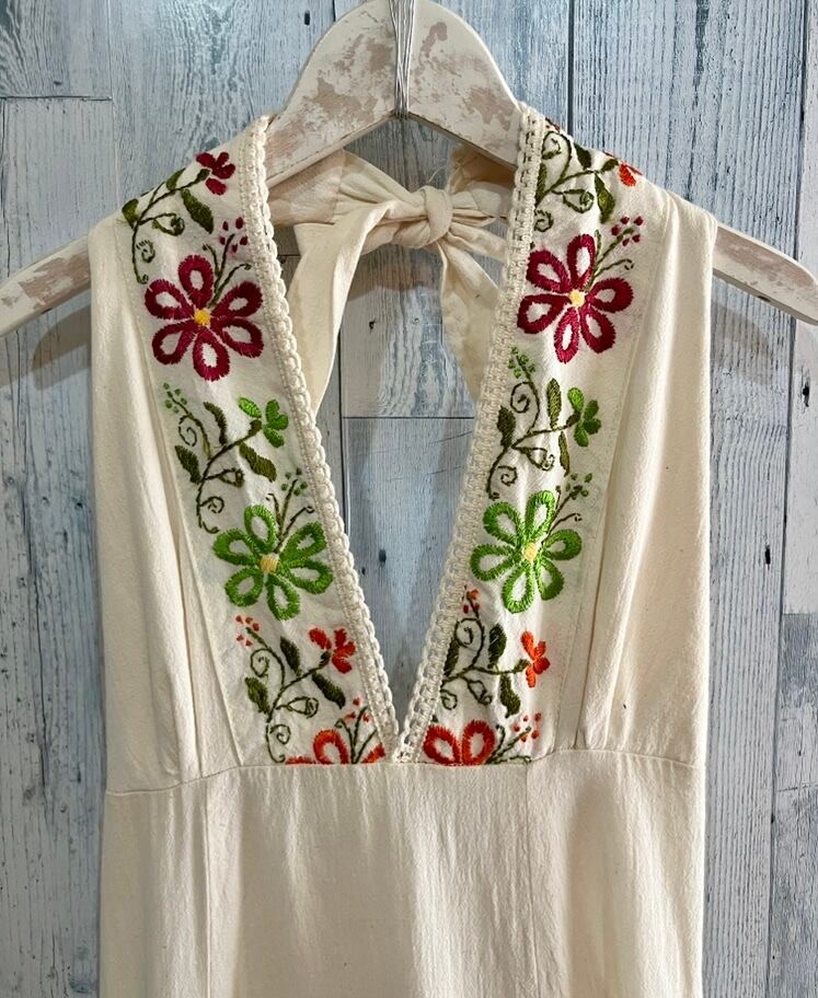 ビンテージ ホルターネック 刺繍 ロングワンピース メキシコ