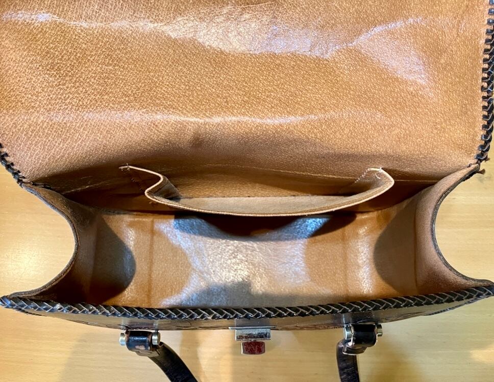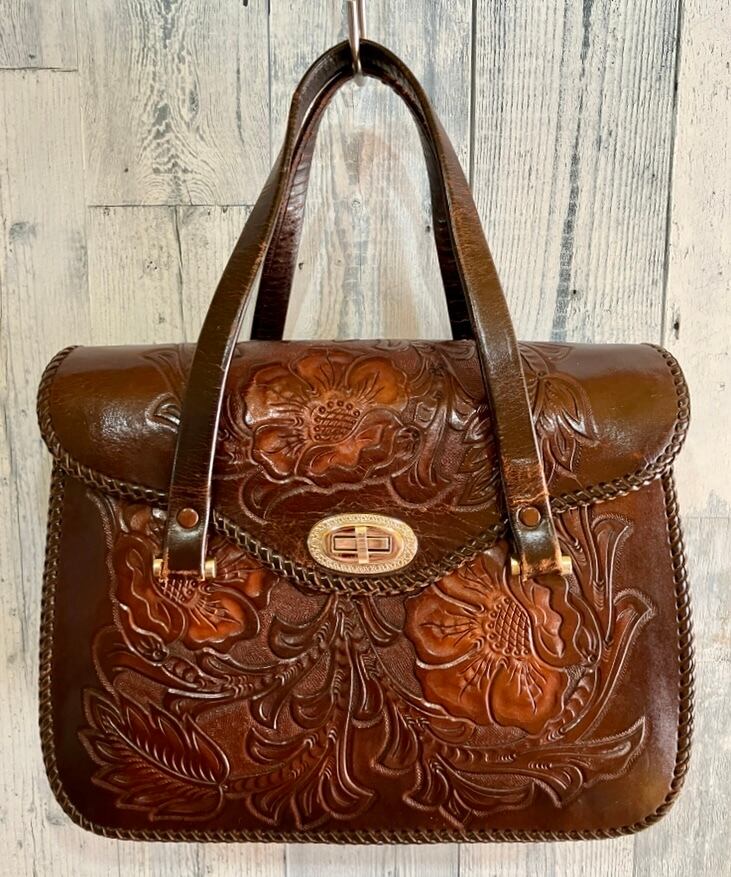 ビンテージ カービングレザーバッグです。