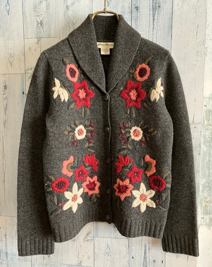 EddieBouer エディバウアー 花刺繍 カーディガン XS