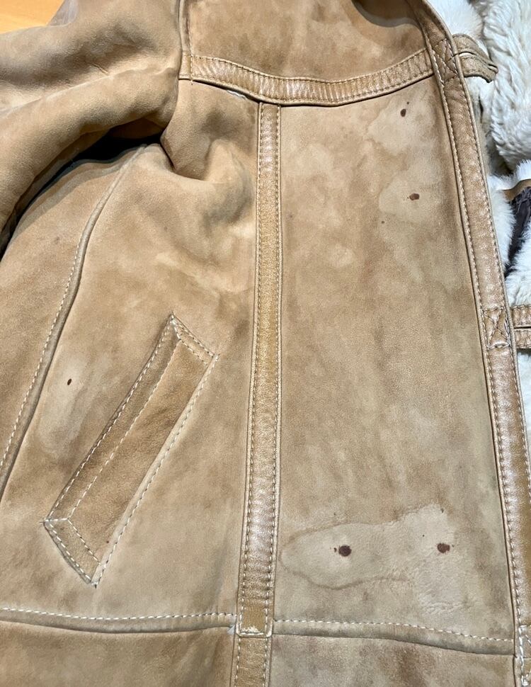 スペイン製 ビンテージ ロング丈 フード付 ムートンコート
