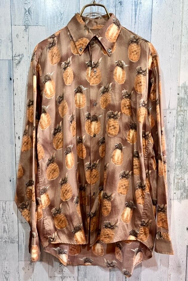 ビンテージ フランス製ファブリックHARTFORDパイナップル柄ボタンダウンシャツ