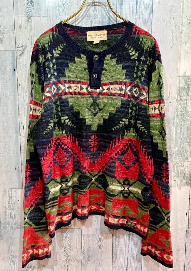 Denim&SupplyラルフローレンRalph Lauren ネイティブ柄ヘンリーネックニット