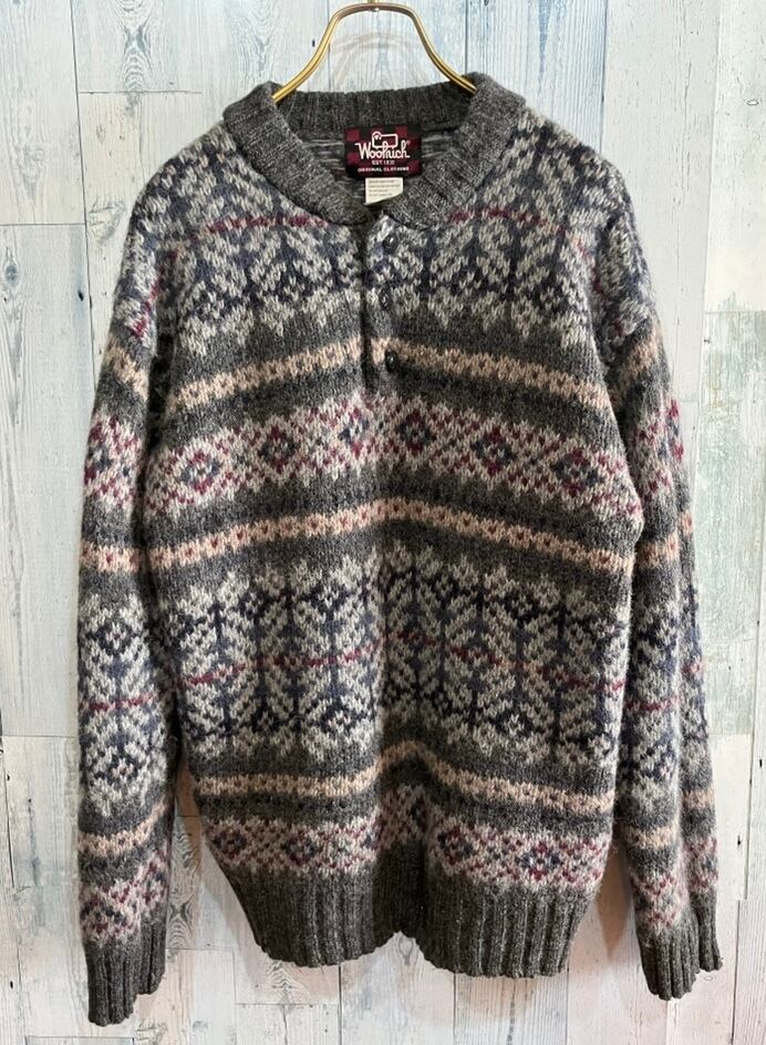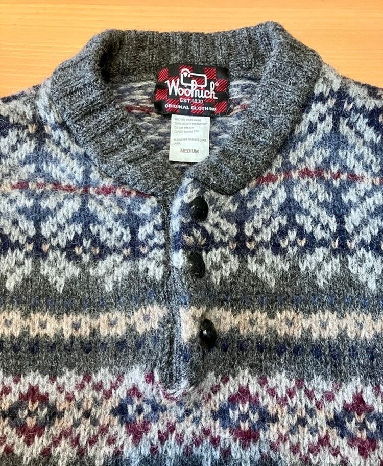WOOLRICHウールリッチ ヘンリーネック柄物セーター 雪チロリアン