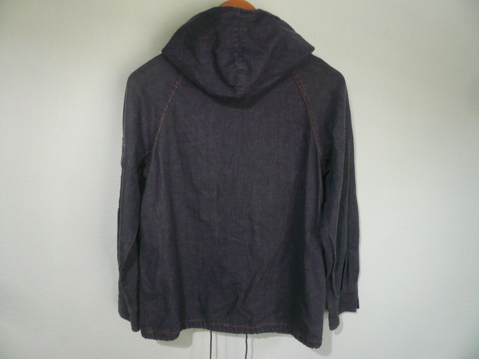 USビンテージ古着 チェック裏地 フード付 デニムジャケット カバーオール 70s 80s OLD ショップコート ガウン