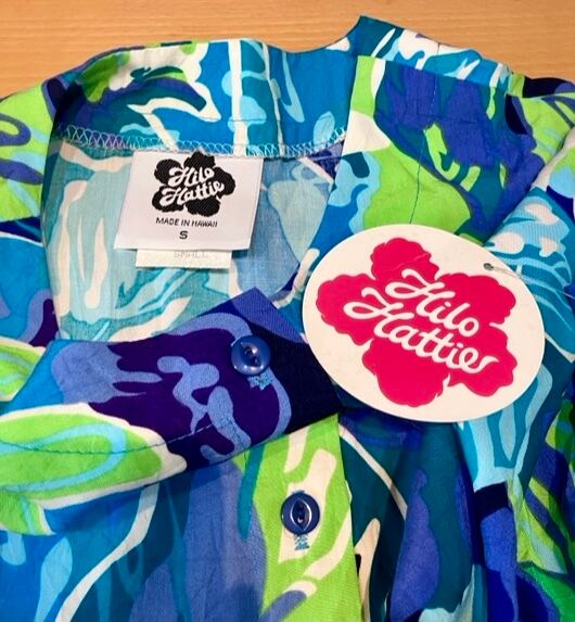 ハワイ製ビンテージHILOHATTIEアロハワンピース未使用デッドストックブルー系