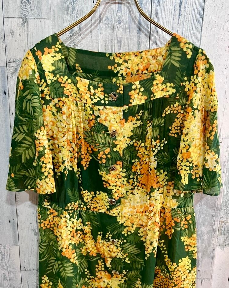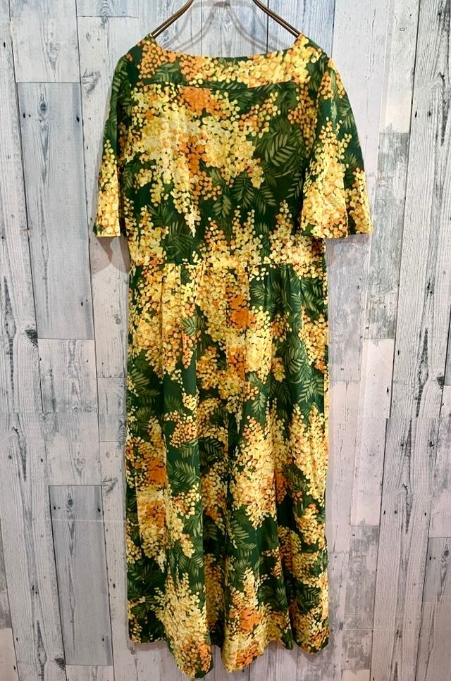 レトロビンテージ 花柄 ロングワンピース 共布帯付き
