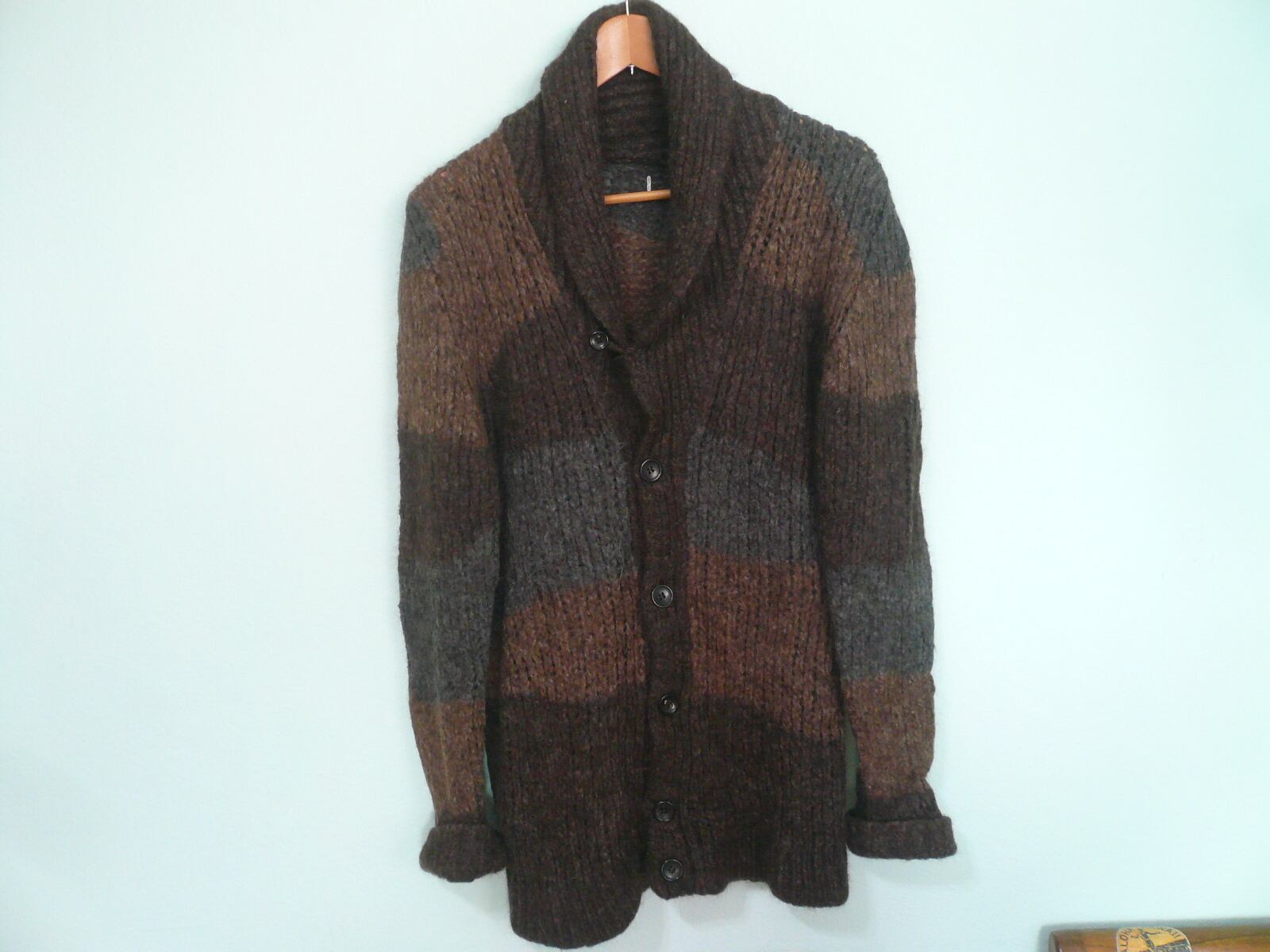 イタリア製 アルパカ ロングカーディガン ニットガウン セーター ランダムボーダー 茶系