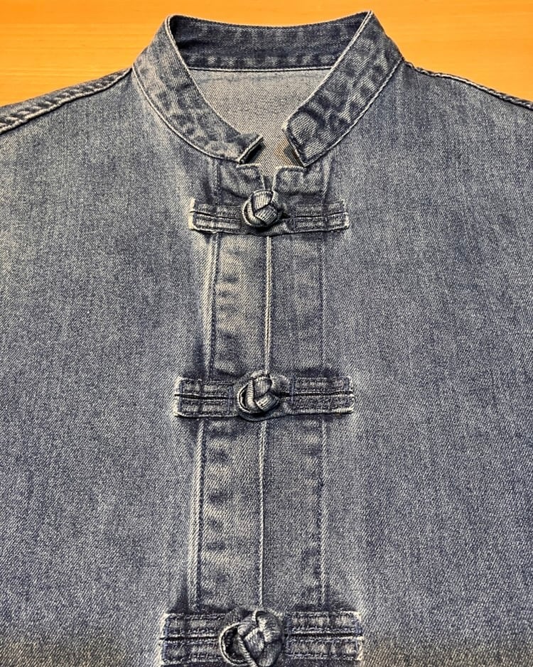 デニム カンフージャケット チャイナ ビッグシルエット カバーオール