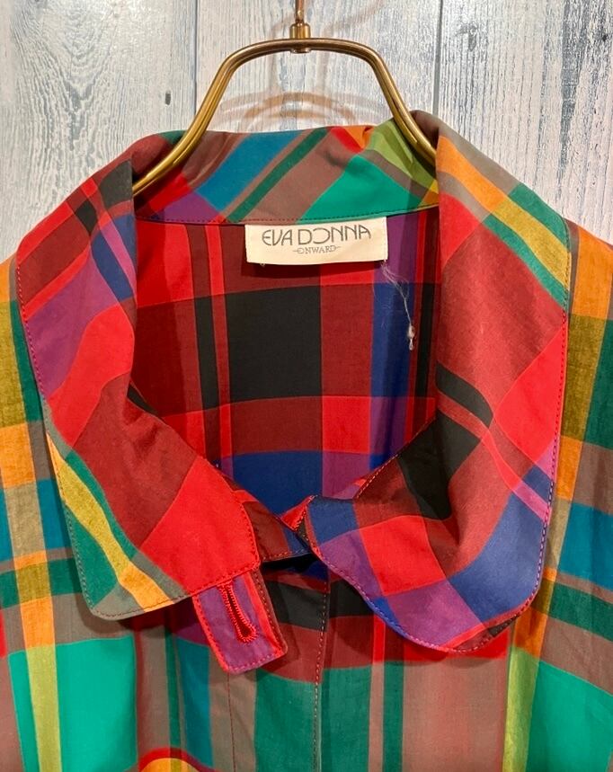 レトロビンテージ マドラスチェック シャツジャケット ブルゾン 80s90s