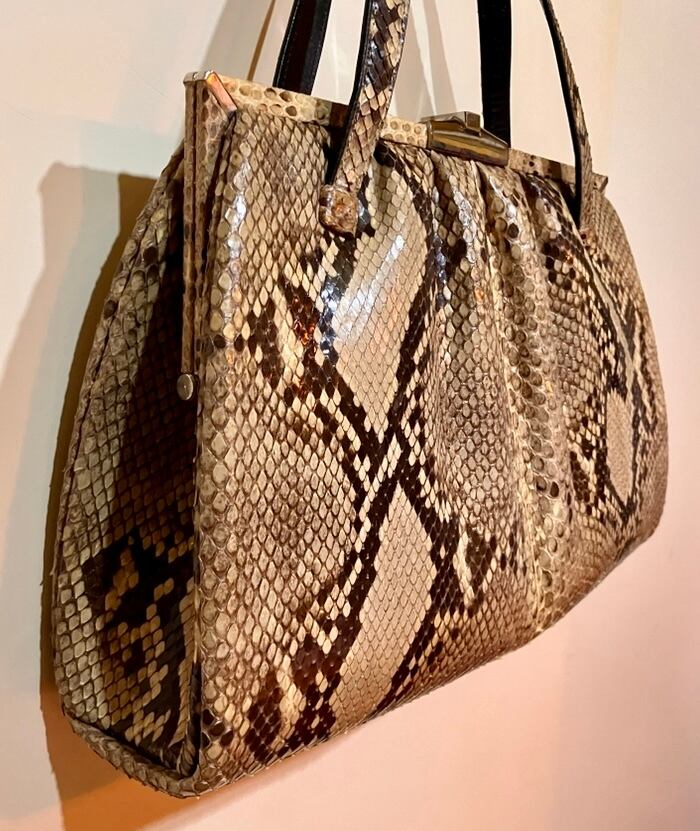 レトロ ビンテージ 蛇革 ハンドバッグ パイソン ニシキヘビ