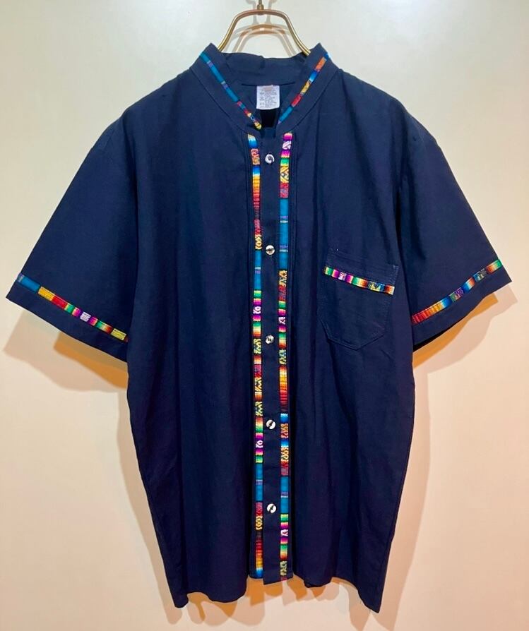 メキシコ製 サラペ トリミング スタンドカラー シャツ