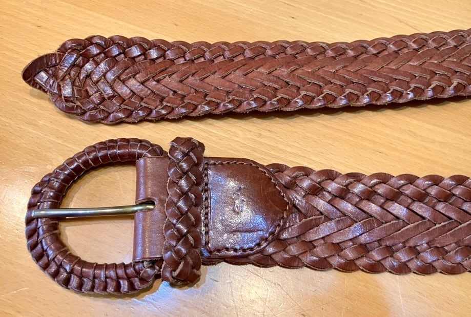イギリス製ビンテージRalphLaurenラルフローレン幅広メッシュレザーベルト