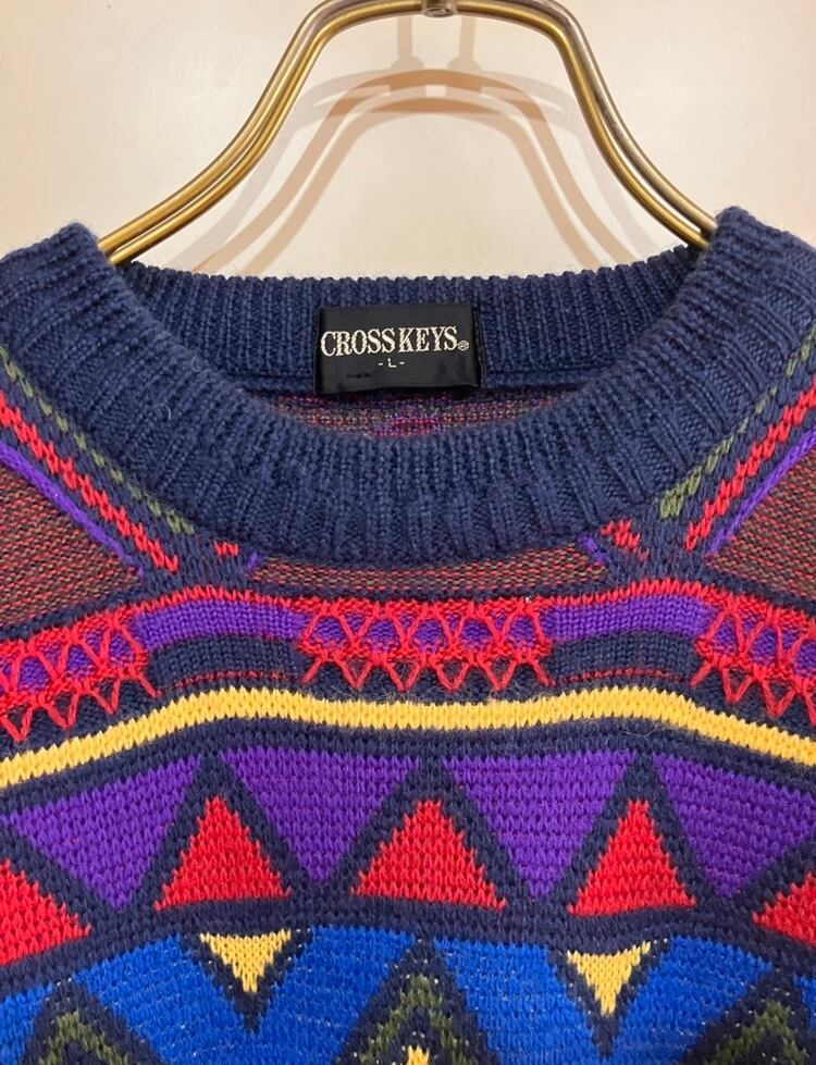ビンテージ CROSS KEYS 柄物 ニット セーター 3D