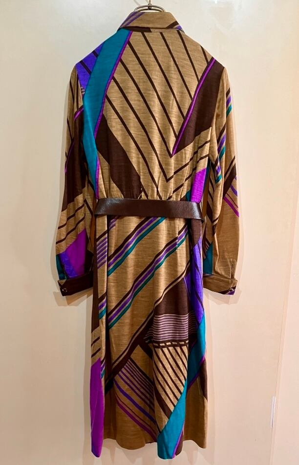 国産ビンテージ アート柄 ワンピース 本革ベルト付 昭和レトロ