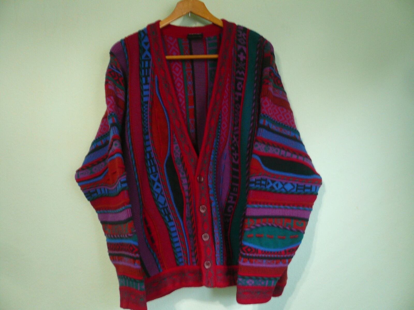 オーストラリア製 EMAROO クージースタイル 立体 3D ニット ウールカーディガン / COOGIE 90s OLD
