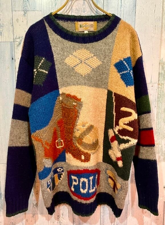 イタリア製ビンテージSOUTH COAST POLO柄 セーター M
